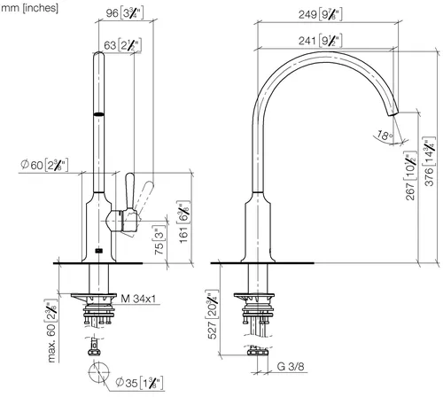 Dornbracht VAIA single lever mixer, projection 241mm