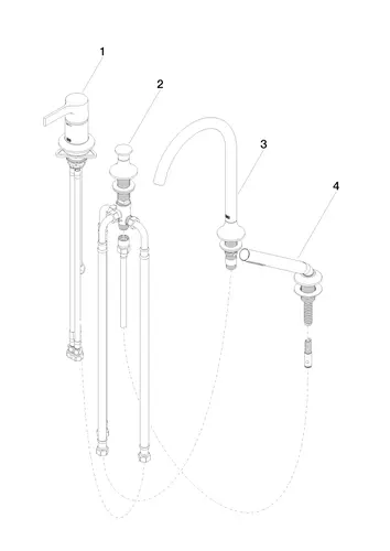 - 1x Wannen-Vierlochbatterie für Wannenrand- bzw. Fliesenrandmontage