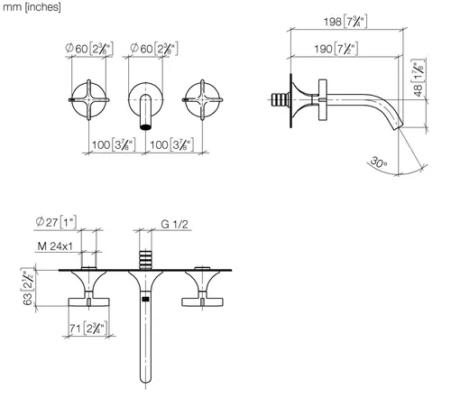 Dornbracht VAIA Waschtisch-Wandbatterie ohne Ablaufgarnitur, Kreuzgriff, Ausladung 190mm