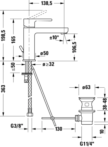 Duravit B.2 eengreeps wastafelmengkraan M, FreshStart, Minusflow, uittrede 139mm, met verzonken waste, hoogglanzend chroom