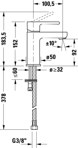 Duravit B.2 eengreeps wastafelmengkraan S, FreshStart, Minusflow, projectie 101mm, zonder afvoergarnituur, hoogglanzend chroom