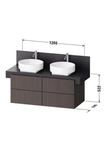 Duravit Balcoon, Konsolenwaschtischunterbau, wandhängend, Schieferbraun Strukturiert Matt, rechteckig, Tip-on Technik, 570x1200x522mm