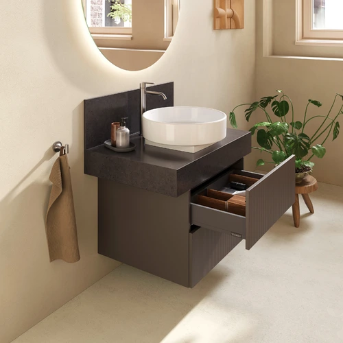 Duravit Balcoon, Konsolenwaschtischunterbau, wandhängend, Schieferbraun Strukturiert Matt, rechteckig, Tip-on Technik, 570x600x522mm