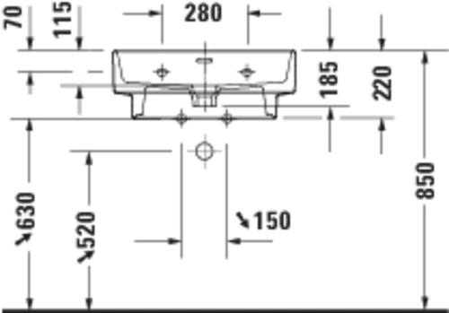 - Anzahl Hahnlöcher pro Waschplatz: 1 Mitte Hinten