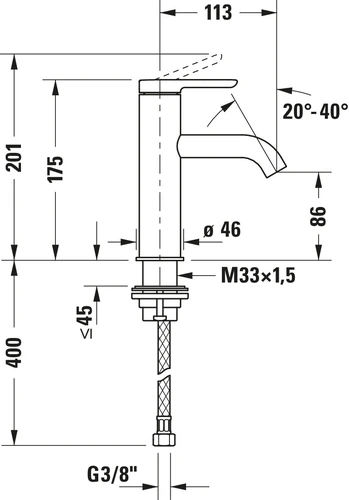 • Aansluiting via flexibele aansluitslangen 3/8"
