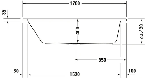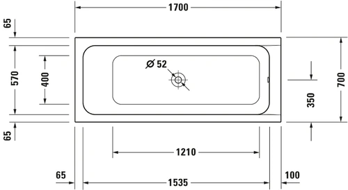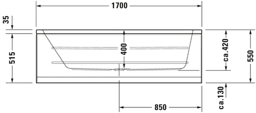 Duravit D-Code Badewanne, 1700x700mm, Rechteckig, Einbauversion, 110 Liter, 1 Rückenschräge, weiß