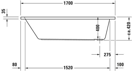 Duravit D-Code Badewanne, 1700x700mm, Rechteckig, Einbauversion, 110 Liter, 1 Rückenschräge, weiß