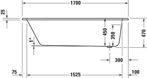 Duravit D-Code Badewanne, 1700x700mm, Rechteckig, Einbauversion, 230 Liter, 1 Rückenschräge, weiß hochglanz