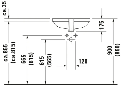 Duravit D-Code Einbauwaschtisch, ohne Hahnloch, mit Überlauf, 495x290x210mm, Weiß Hochglanz