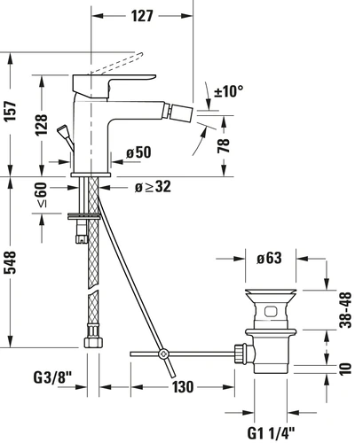 Duravit D-Code Einhebel-Bidetmischer, Standmontage
