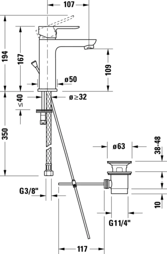 - Anschlussmaß Schlauchanschluss: 3/8"