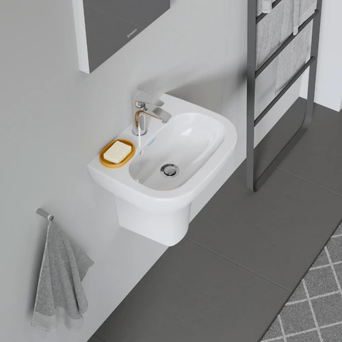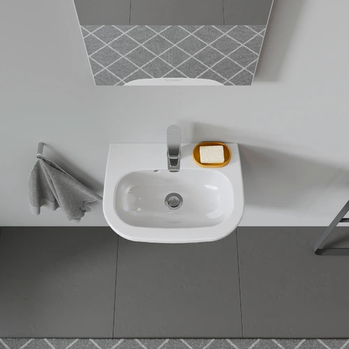 Duravit D-Code Handwaschbecken, mit Hahnloch, mit Überlauf, 450x340x145mm, Weiß Hochglanz