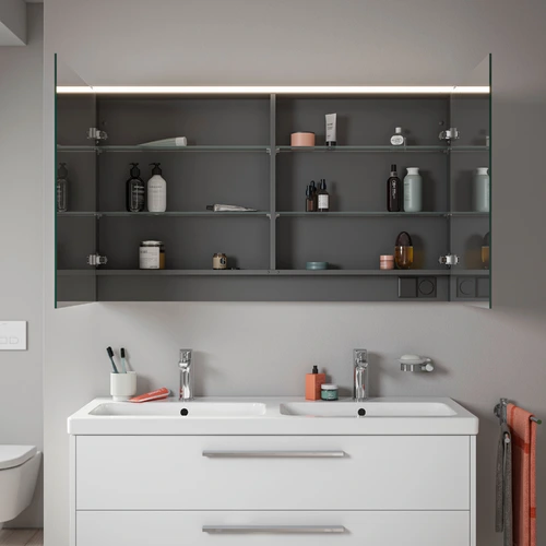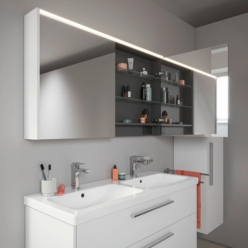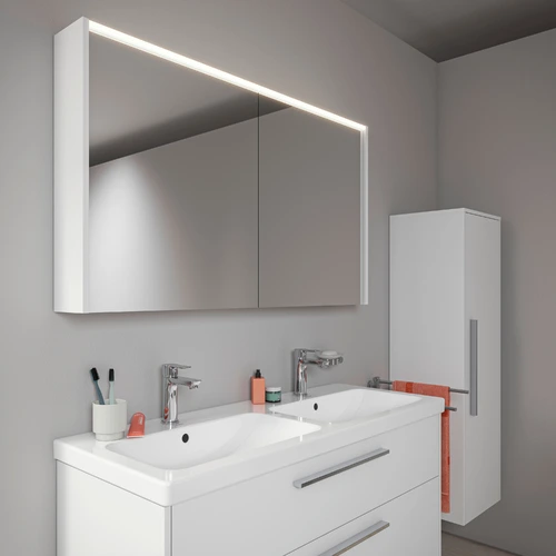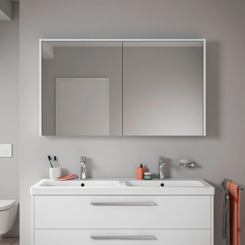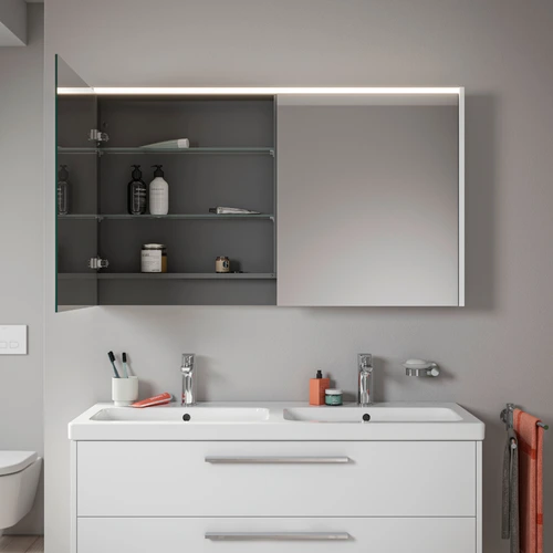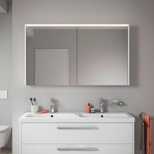 Armoire de toilette Duravit D-Code, prise type F (EU, DE), 2 portes, champ lumineux LED en haut, 1200x700mm, 9 W