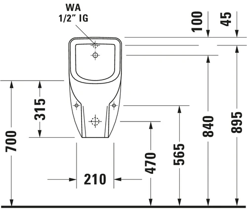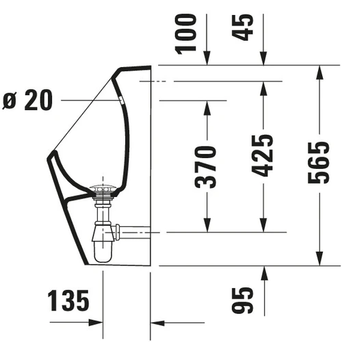 Duravit D-Code Urinal, rimless, Zulauf hinten, 305x290x565mm