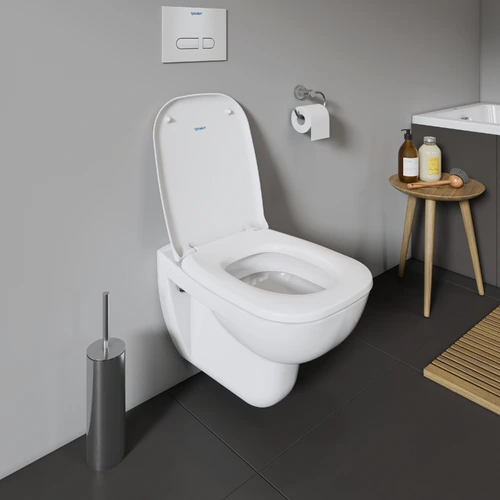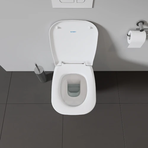 Duravit D-Code WC-Sitz, Bügelbefestigung, 360x430mm, Weiß Hochglanz, Edelstahl Scharniere