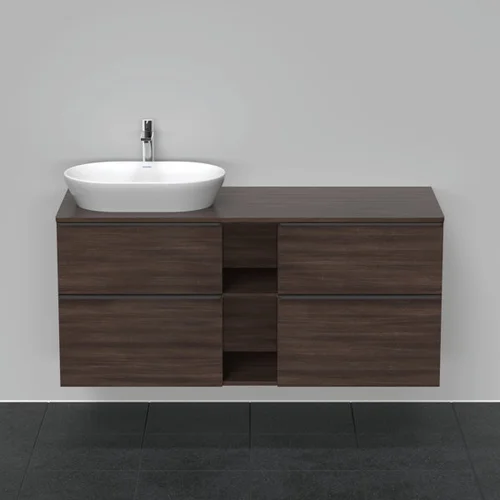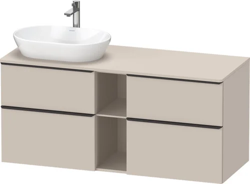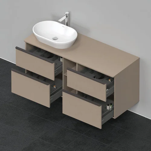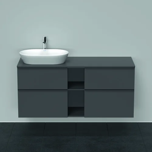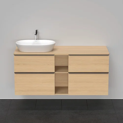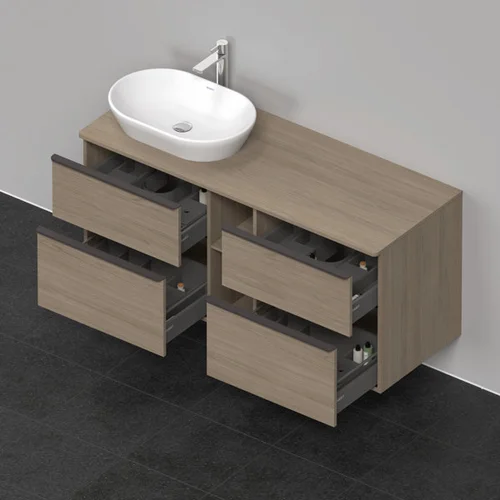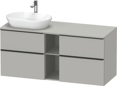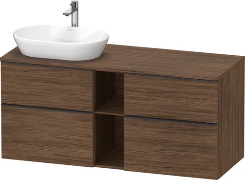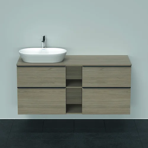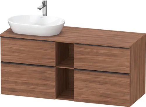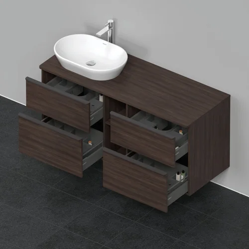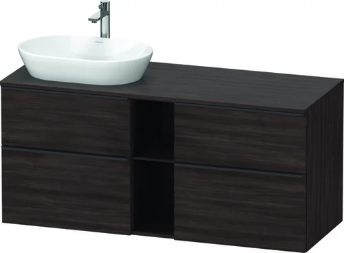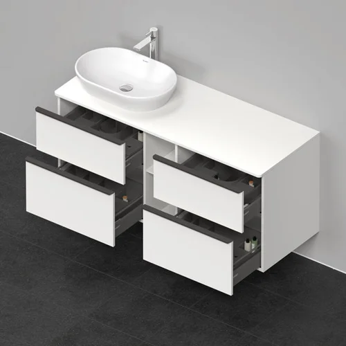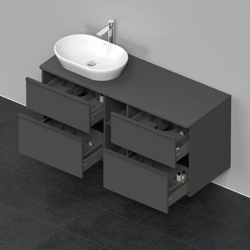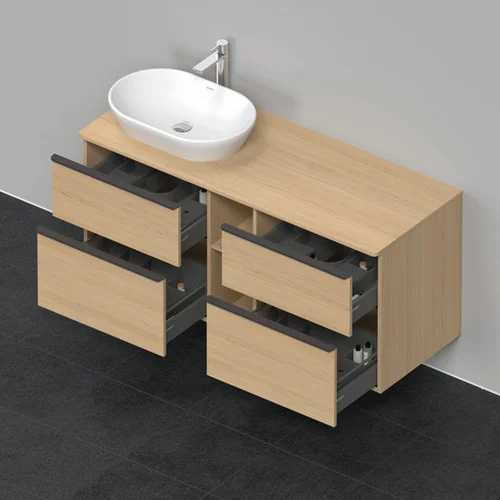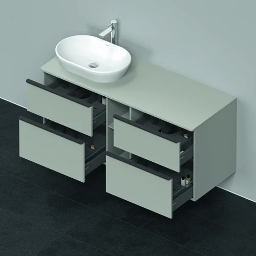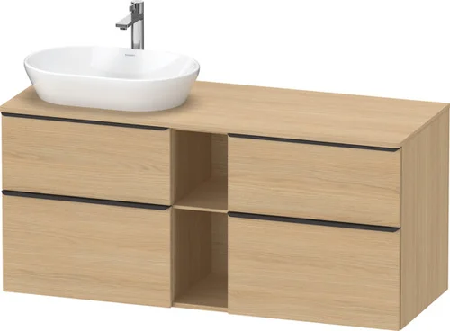 Duravit D-Neo, Waschtischunterbau wandhängend (Ausschnitt links), Breite 1400 x Tiefe 550mm, 4x Schubkästen, 1x offenes Fach, mit Griff