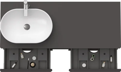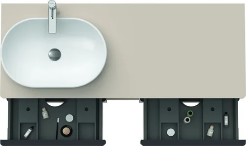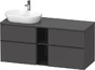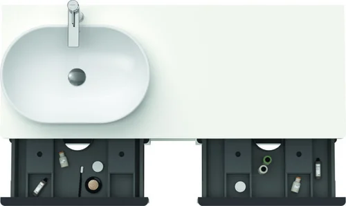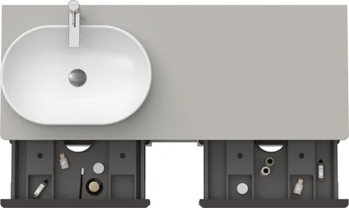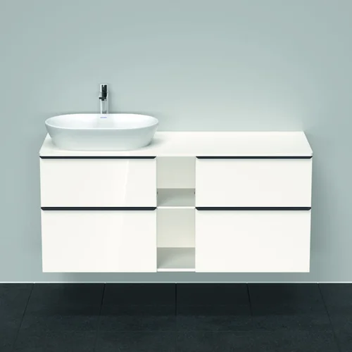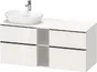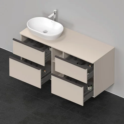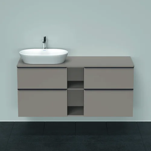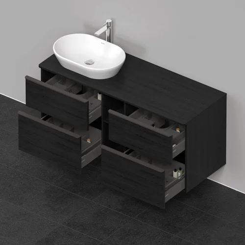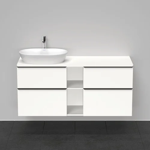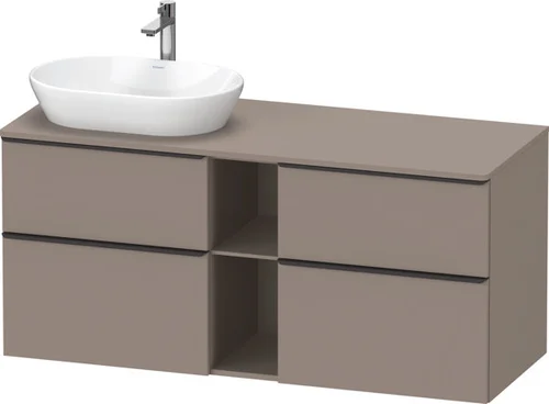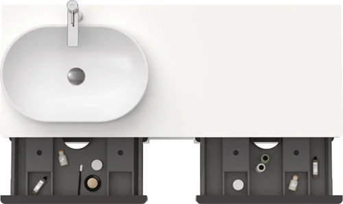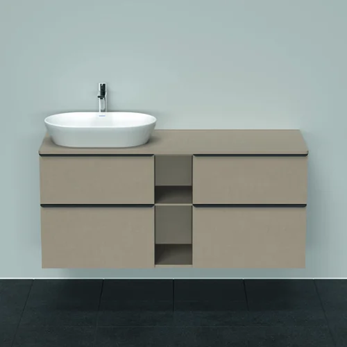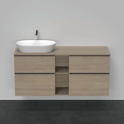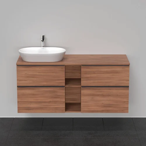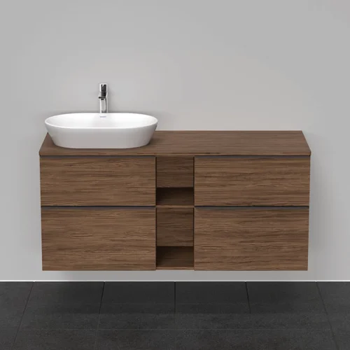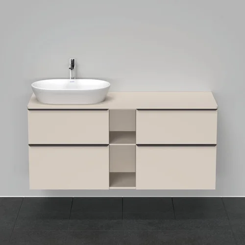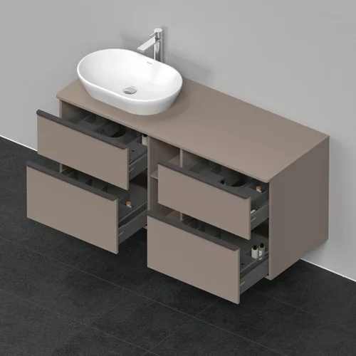 Duravit D-Neo, Waschtischunterbau wandhängend (Ausschnitt links), Breite 1400 x Tiefe 550mm, 4x Schubkästen, 1x offenes Fach, mit Griff