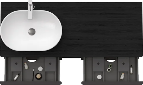 - Schubkästen unter dem Becken inklusive Siphonausschnitt und Schürze