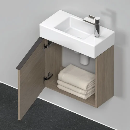 Duravit D-Neo, wall hung vanity unit, width 484 x depth 222mm, 1x door (stop left), with handle
