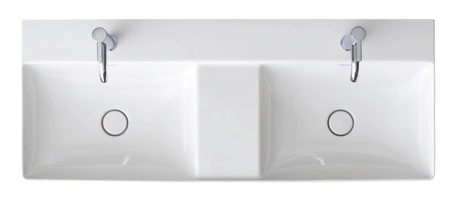 Duravit DuraSquare Möbeldoppelwaschtisch, 120x47cm, 2 Hahnlöcher, 2 Becken, ohne Überlauf, Unterseite geschliffen und glasiert