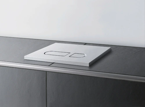 Ein weiteres bemerkenswertes Merkmal der Drückerplatte A1 ist, dass sie in Kunststoff erhältlich ist und flächenbündig montiert werden kann. Dies gibt dem Badezimmer ein sauberes und nahtloses Aussehen. Es ist jedoch zu beachten, dass dies für den Nasseinbau und Elemente mit verkürzter Bauhöhe nicht gilt.