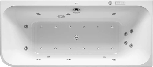 Duravit Happy D.2 Whirlwanne, Ecke rechts, 2 Rückenschrägen, angeformte Acrylverkleidung, Ab-und Überlaufgarnitur, Combi-System E, 1800x800mm