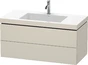 Duravit L-Cube Möbelwaschtisch c-bonded mit Unterbau wandhängend, 100x48 cm, 2 Schubkästen, ohne Überlauf, 1 Hahnloch