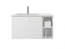 Duravit ME by Starck Möbelwaschtisch 83 cm, ohne Hahnloch, mit Überlauf, mit Hahnlochbank, asymmetrisch, Becken links
