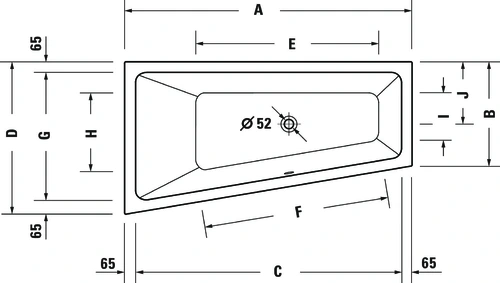 Duravit No.1 Einbau-Whirlwanne, Trapez, 1600x850mm, Jet Protect, 1 Rückenschräge links, weiß