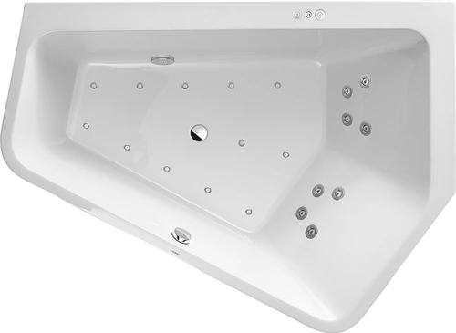 Duravit Paiova 5 Whirlpool, Einbauversion, Ecke rechts, 2 Rückenschrägen rechts, Gestell, Ab- und Überlaufgarnitur, Combi-System P, 1900x1400mm
