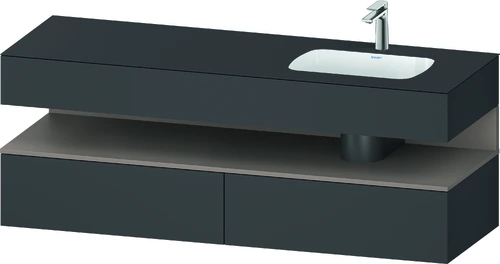 Duravit Qatego Einbauwaschtisch mit Konsolenwaschtischunterbau, 1600x550x600mm, Nische Basalt Matt, Becken rechts