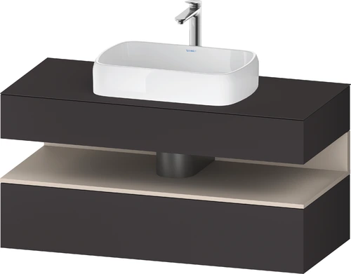 Duravit Qatego Konsolenwaschtischunterbau, 1 Auszug, 1 Schubkasten, Ausschnitt mittig, 1200x550x600mm, Nische Taupe Supermatt
