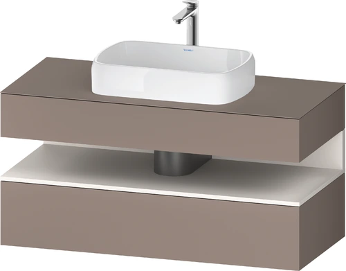 Duravit Qatego Konsolenwaschtischunterbau, 1 Auszug, 1 Schubkasten, Ausschnitt mittig, 1200x550x600mm, Nische Weiß Supermatt