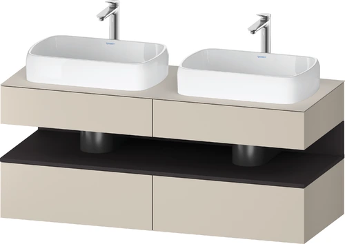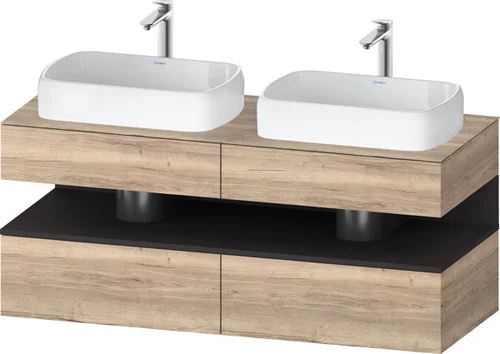 Duravit Qatego Konsolenwaschtischunterbau, 2 Auszüge, 2 Schubkästen, 2 Ausschnitte, 1400x550x600mm, Nische Graphit Supermatt