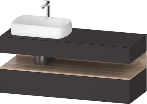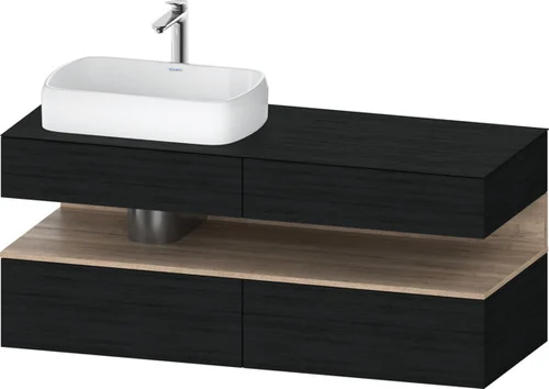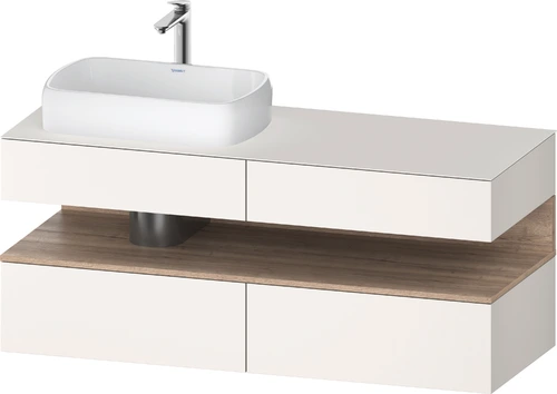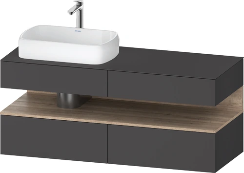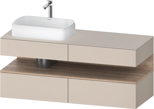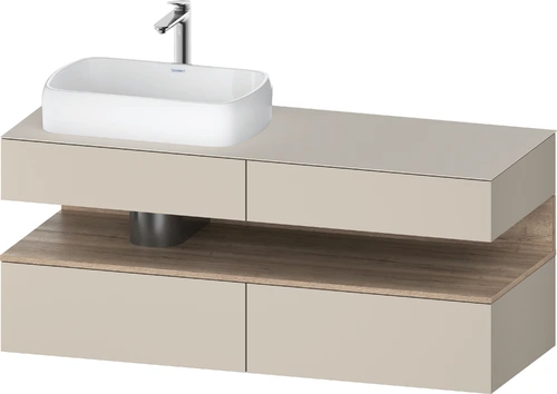 Duravit Qatego Konsolenwaschtischunterbau, 2 Auszüge, 2 Schubkästen, Ausschnitt links, 1400x550x600mm, Nische Eiche Mamoriert
