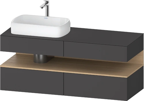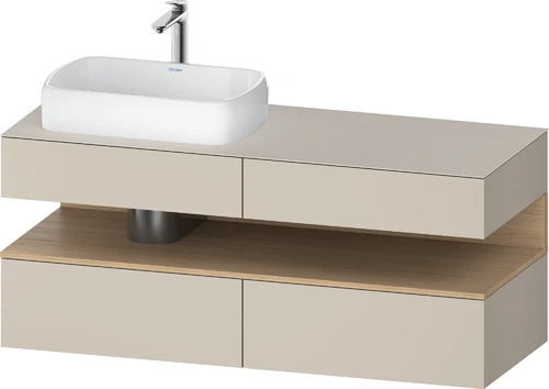 Duravit Qatego Konsolenwaschtischunterbau, 2 Auszüge, 2 Schubkästen, Ausschnitt links, 1400x550x600mm, Nische Eiche Natur
