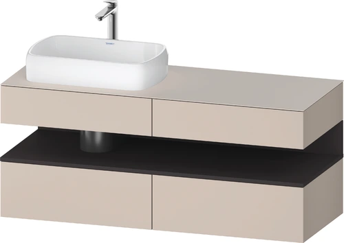 Duravit Qatego Konsolenwaschtischunterbau, 2 Auszüge, 2 Schubkästen, Ausschnitt links, 1400x550x600mm, Nische Graphit Supermatt