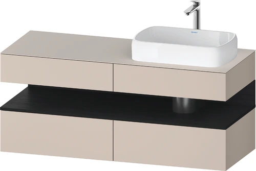 Duravit Qatego Konsolenwaschtischunterbau, 2 Auszüge, 2 Schubkästen, Ausschnitt rechts, 1400x550x600mm, Nische Eiche Schwarz