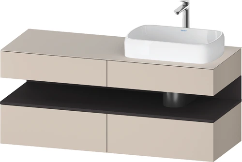 Duravit Qatego Konsolenwaschtischunterbau, 2 Auszüge, 2 Schubkästen, Ausschnitt rechts, 1400x550x600mm, Nische Graphit Supermatt