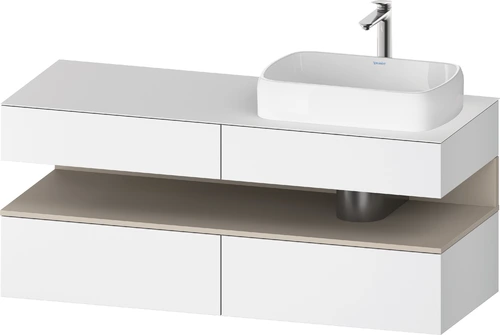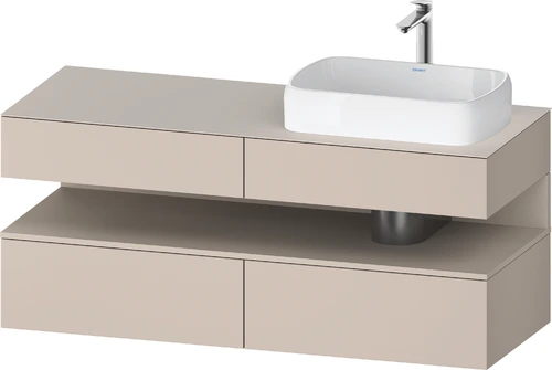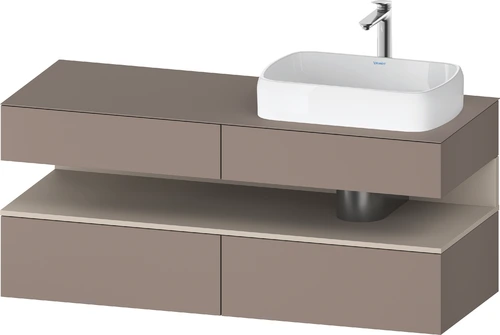 Duravit Qatego Konsolenwaschtischunterbau, 2 Auszüge, 2 Schubkästen, Ausschnitt rechts, 1400x550x600mm, Nische Taupe Supermatt
