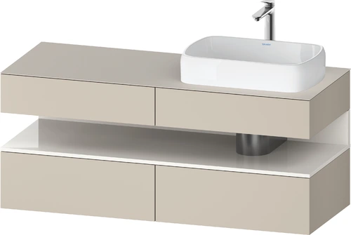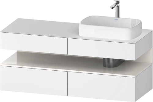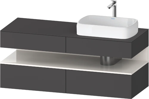 Duravit Qatego Konsolenwaschtischunterbau, 2 Auszüge, 2 Schubkästen, Ausschnitt rechts, 1400x550x600mm, Nische Weiß Hochglanz