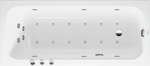 Duravit Quatego Whirlwanne, Einbauversion, 1 Rückenschräge, Gestell, Ab- und Überlaufgarnitur, Combi-System P, 1600x700mm