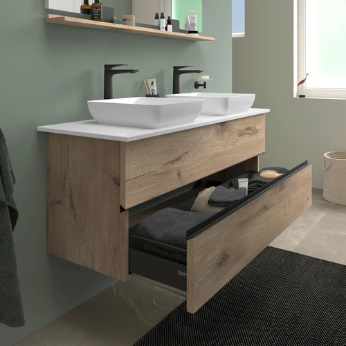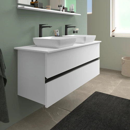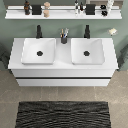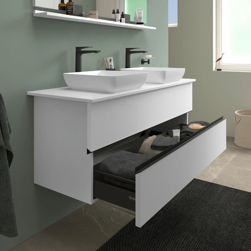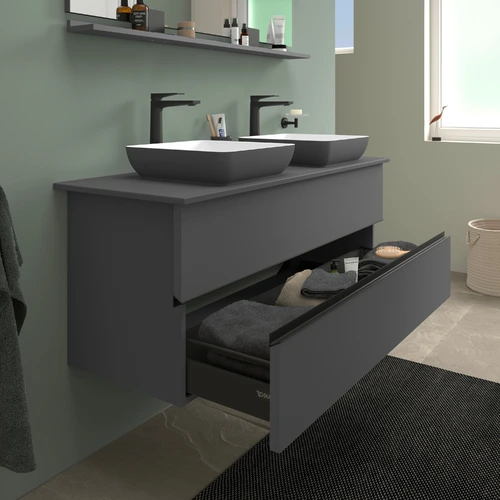 Duravit Sivida Konsolenwaschtischunterbau, 2 Schubkästen, Griffleiste Diamantschwarz Matt, 1315x475x548mm