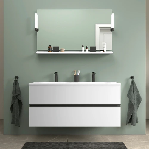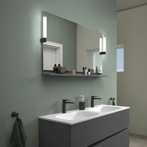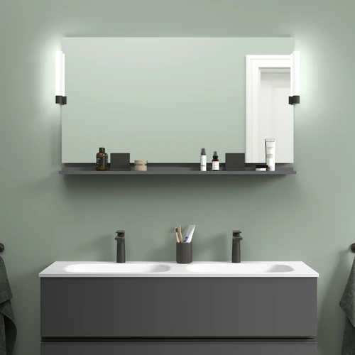 - mit 2 LED-Aufsatzleuchten außen seitlich und 1 Ablage