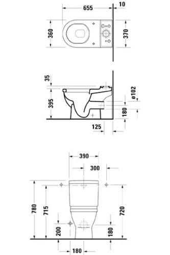 Duravit Stand WC Kombi Starck 3 65,5cm, Abgang waagerecht, weiss