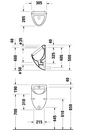 Duravit Fizz Urinal absaugend aus Sanitärkeramik 305x285x500mm ohne Deckel, Zulauf verdeckt von hinten