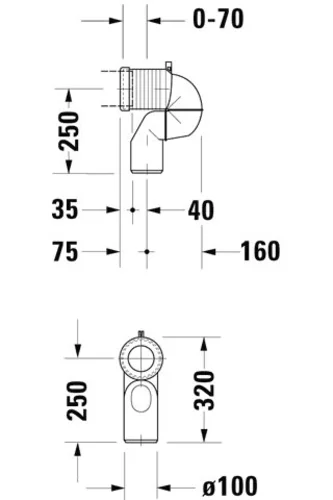Duravit Vario Anschlussbogen für Abgang senkrecht von 200 bis 240mm