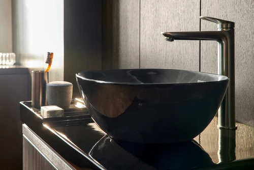 - Armatur mit erhöhtem Auslauf für großzügige Bewegungsfreiheit zwischen Becken und Armatur