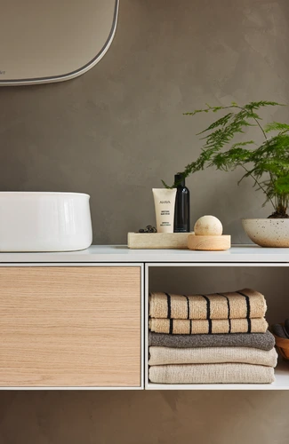 Duravit Zencha Konsolenwaschtischunterbau, 1300x550mm, 1 Auszug, offenes Fach rechts, Ausschnitt links