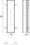 - Höhe 658 mm, Breite 154 mm, Tiefe 150 mm